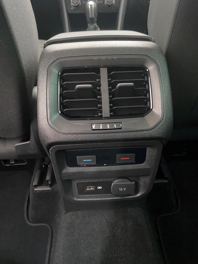 2 Luftausströmern hinten in schwarz glänzend und 12-V-Steckdose hinten
